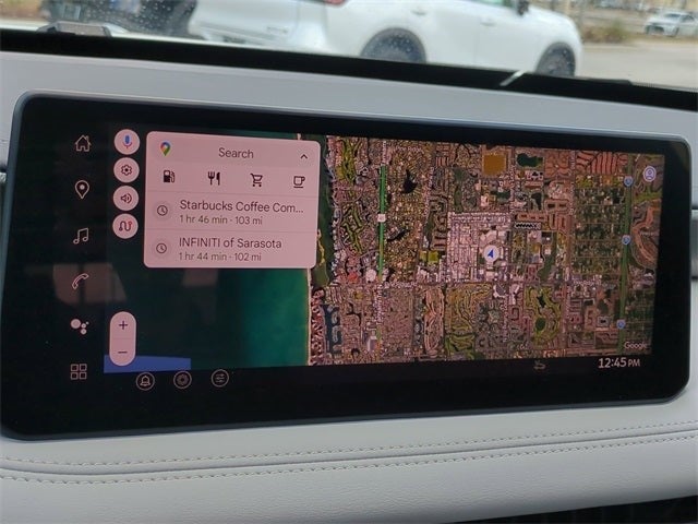- Radio: Klipsch Premium Audio System -inc: 16 speakers w/subwoofer, INFINITI InTouch 12.3" interactive display, Google built-in w/navigation: Google Assistant, Playstore, maps and data, SiriusXM satellite radio, wireless Apple CarPlay, wireless Android Auto, advanced voice recognition (one shot VDE, Natural Language Understanding (NLU)), INFINITI InTouch services and 5G Wi-Fi hotspot, Active Noise Cancellation (ANC) and 2 data capable type C USB ports in front row