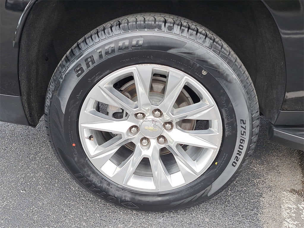 THIS VEHICLE HAS THE FOLLOWING FEATURES AND OPTIONS: Preferred Equipment Group 1LZ (12-Way Power Driver & Passenger Seat Adjusters, 1st & 2nd Row Color-Keyed Carpeted Floor Mats, 2 USB Data Ports, 2-Speed Active Electronic AutoTrac Transfer Case, 3rd Row 60/40 Power-Folding Split-Bench, Auto-Dimming Inside Rear-View Mirror, Automatic Heated Steering Wheel, Bose 10-Speaker Surround w/CenterPoint, Bright Front & Rear Door Sill Plates, Chrome Door Handles w/Body-Color Strip, Chrome Mirror Caps, Color-Keyed Carpeting Floor Covering, Driver & Front Outboard Passenger Airbags, Dual Exhaust System, Enhanced Driver Information Center, Floor Console w/Storage Area, Front & Rear Park Assist, Hands-Free Rear Power Programmable Liftgate, HD Radio, Heated & Ventilated Driver & Front Passenger Seats, Heated 2nd Row Outboard Seats, Heated Driver & Front Passenger Seats, Hill Descent Control, Infotainment Display, Lane Change Alert w/Side Blind Zone Alert, Lane Keep Assist w/Lane Departure Warning, Leather-Wrapped Steering Wheel, LED Daytime Running Lamps, Memory Settings, Outside Heated Power-Adjustable Mirrors, Power Release 2nd Row Bucket Seats, Power Tilt & Telescopic Steering Column, Rear Cross Traffic Alert, Remote Start, Safety Alert Seat, SiriusXM Radio w/360L, and Universal Home Remote), Suburban Premier, 4D Sport Utility, EcoTec3 5.3L V8, 10-Speed Automatic with Overdrive, 4WD, Black, Jet Black Leather, Navigation System, 10 Speakers, 20 x 9 Polished Aluminum Wheels, 3.23 Rear Axle Ratio, 3rd row seats: split-bench, 4-Wheel Disc Brakes, ABS brakes, Adaptive suspension, Air Conditioning, Alloy wheels, AM/FM radio: SiriusXM with 360L, Apple CarPlay/Android Auto, Auto High-beam Headlights, Auto-dimming door mirrors, Auto-dimming Rear-View mirror, Auto-leveling suspension, Automatic temperature control, Brake assist, Bumpers: body-color, Cargo Security Shade (LPO), Compass, Delay-off headlights, Driver door bin, Driver vanity mirror, Dual front impact airbags, Dual front side impact airbags, Electronic Stability Control, Emergency communication system: OnStar and Chevrolet connected services capable, Four wheel independent suspension, Front anti-roll bar, Front Bucket Seats, Front Center Armrest, Front dual zone A/C, Front reading lights, Fully automatic headlights, Garage door transmitter, Heated door mirrors, Heated front seats, Heated rear seats, Heated steering wheel, Illuminated entry, Leather steering wheel, Low tire pressure warning, Magnetic Ride Control Suspension, M