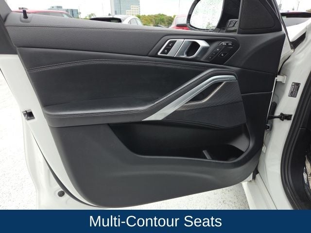 Designed to impress, the exterior of this X6 exudes a bold and athletic presence with its Mineral White Metallic finish and 20-inch M Star-Spoke Bi-Color wheels. The Shadowline Exterior Trim and Aerodynamic Kit further accentuate the vehicle's sleek and sophisticated styling.