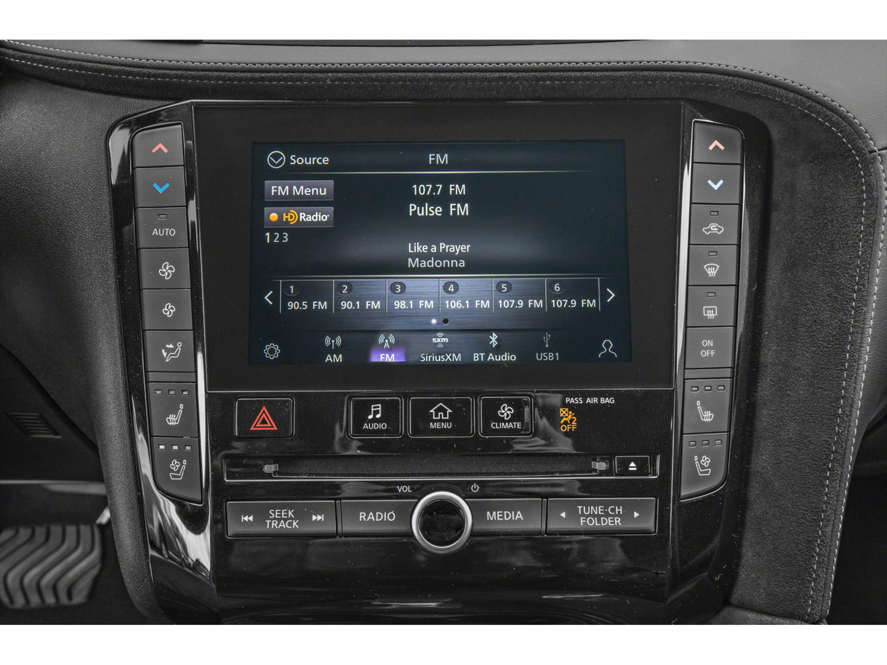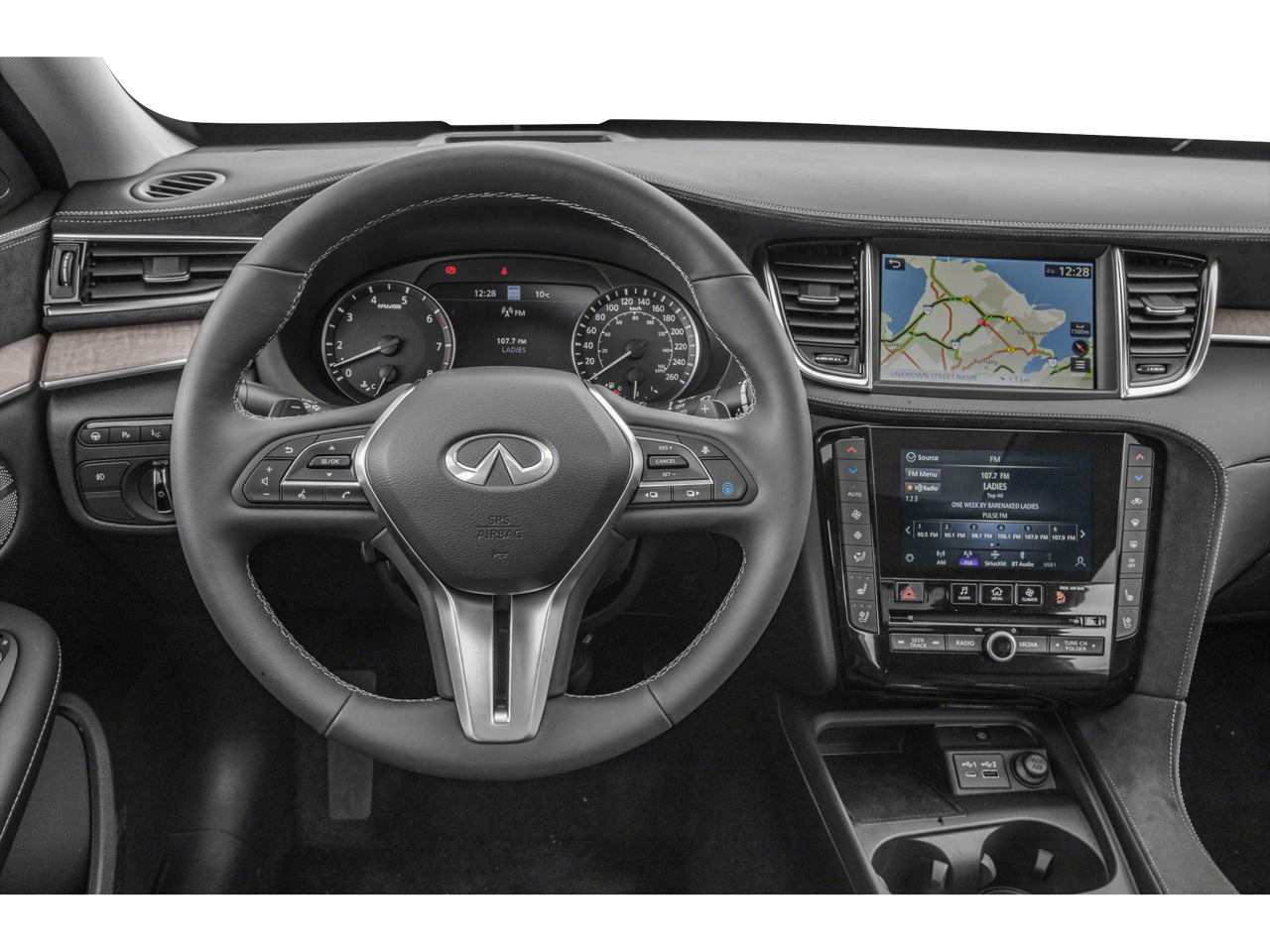 - Radio: Bose Performance Series Audio System -inc: 16 speakers, metallic speaker grilles on tweeters, INFINITI InTouch, INFINITI InTouch services, INFINITI InTouch dual display system w/upper 8" and lower 7" HD touch screens, wireless Apple CarPlay, Android Auto, HD radio technology, SiriusXM radio w/advanced audio features and 90-day complimentary trial, INFINITI voice recognition, Siri Eyes Free, Wi-Fi hotspot, active noise cancellation, navigation w/3D building graphics, 5 year complimentary access to premium traffic and MapCare, SiriusXM Traffic w/3 month complimentary trial access to real-time traffic information and SiriusXM Travel Link w/3 month complimentary trial access to weather, fuel prices, stock prices, sport scores, movie listings and parking