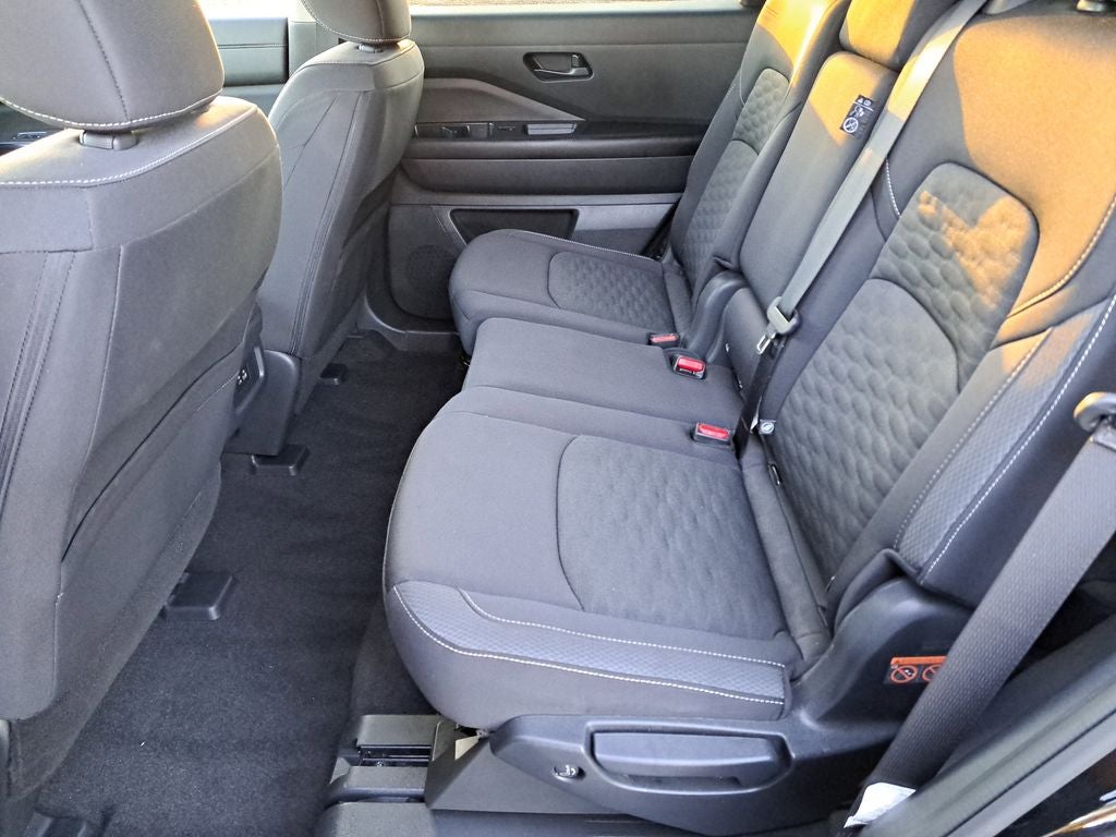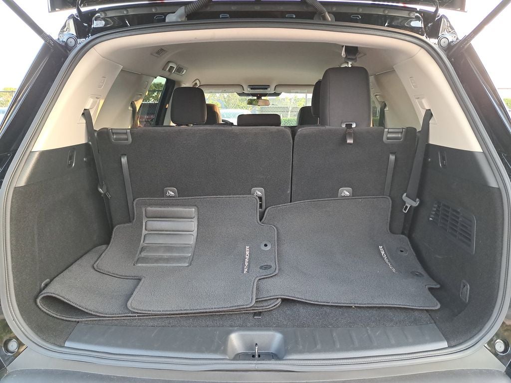 THIS VEHICLE HAS THE FOLLOWING FEATURES AND OPTIONS: Pathfinder SV, Nissan Certified Certified, 4D Sport Utility, 3.5L V6 DOHC, 9-Speed Automatic, FWD, Super Black, Charcoal Cloth, 3rd row seats: bench, 4-Wheel Disc Brakes, 6 Speakers, ABS brakes, Air Conditioning, Alloy wheels, AM/FM radio: SiriusXM, Auto High-beam Headlights, Automatic temperature control, Axle Ratio: 4.334, Bench Seat Carpeted Floor Mats (Set of 4), Brake assist, Bumpers: body-color, Cloth Seating Surfaces, Delay-off headlights, Driver door bin, Driver vanity mirror, Dual front impact airbags, Dual front side impact airbags, Electronic Stability Control, Emergency communication system, Four wheel independent suspension, Front anti-roll bar, Front Bucket Seats, Front Center Armrest, Front dual zone A/C, Front reading lights, Fully automatic headlights, Heated door mirrors, Heated Front Bucket Seats, Heated front seats, Illuminated entry, Knee airbag, Leather steering wheel, Low tire pressure warning, NissanConnect featuring Apple CarPlay and Android Auto, Occupant sensing airbag, Outside temperature display, Overhead airbag, Overhead console, Panic alarm, Passenger door bin, Passenger vanity mirror, Power door mirrors, Power driver seat, Power steering, Power windows, Radio data system, Radio: AM/FM Audio System w/NissanConnect, Rear air conditioning, Rear anti-roll bar, Rear Parking Sensors, Rear reading lights, Rear seat center armrest, Rear side impact airbag, Rear window defroster, Rear window wiper, Reclining 3rd row seat, Remote keyless entry, Security system, Speed control, Speed-sensing steering, Split folding rear seat, Spoiler, Steering wheel mounted audio controls, Tachometer, Telescoping steering wheel, Tilt steering wheel, Traction control, Trip computer, Turn signal indicator mirrors, Variably intermittent wipers, and Wheels: 18 x 8J Painted Alloy.